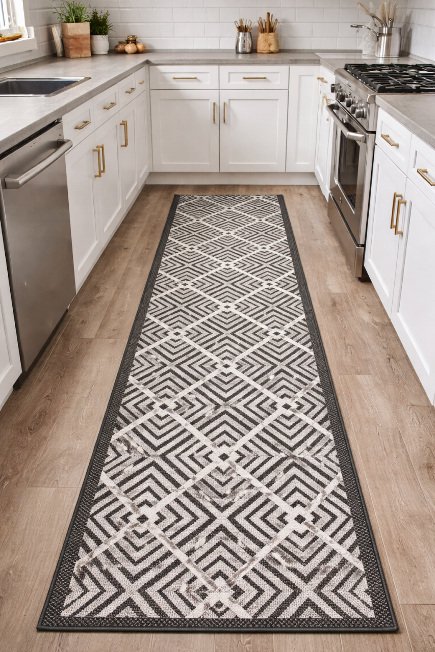 Colectie de traversa cu suport de cauciuc. Nu aluneca pe nicio suprafata, ceea ce face posibila utilizarea in incaperi cu podele alunecoase: bucatarii, coridoare, holuri, bai.
